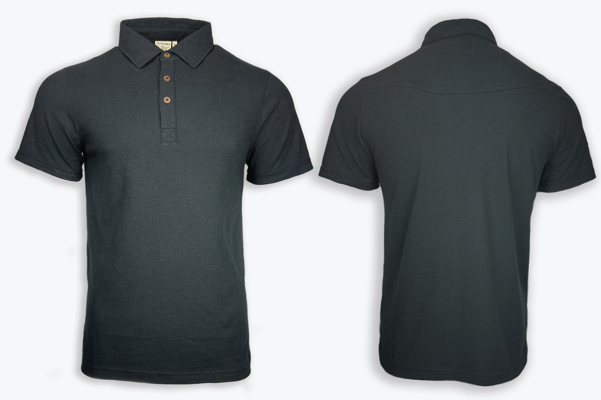 Introducing the Datsusara hemp polo shirt. Made of a light but hemp/organic cotton blend this polo is comfortable, durable and good looking. Featuring coconut shell buttons that compliment the natural high quality look. Only available in strong, subtle, beautiful black.